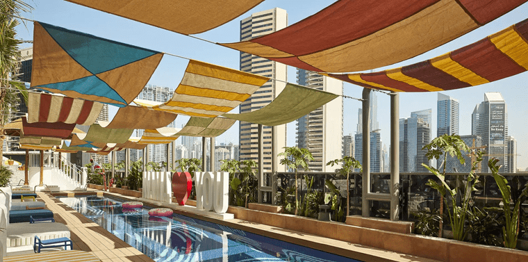 🏊♂️ Střešní bazén s panoramatickým výhledem na downtown Dubaje
